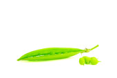 świeży zielony groszek na odizolowanym białym tle zbliżenie, przednie i tylne tło rozmyte z efektem bokeh