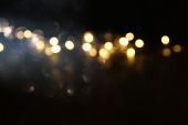 Abstrakcyjne tło bokeh. Złote kółka bokeh na ciemnoniebieskim tle. Nakładka warstwy.