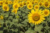 wibrujący żółte kwiaty słonecznika plantacji