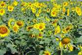 wibrujący żółte kwiaty słonecznika plantacji