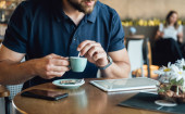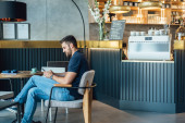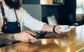 Zdjęcie "Przystojny Barista robi spis produktów w kawiarni. Poważny kelner z brodą stojący w barze i używający schowka do liczenia zapasów w restauracji. " może być wykorzystywane do celów osobistych i komercyjnych zgodnie z warunkami zakupionej licencji Royalty-free. Obraz jest dostępny do pobrania w jakości wysokiej rozdzielczości do 5760x3840.