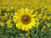 wibrujący żółte kwiaty słonecznika plantacji