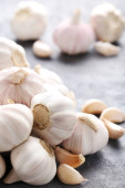 Czosnek organiczny w całości i goździki na drewnianym tle