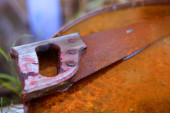 stary zardzewiały widział narzędzie nad tło zardzewiały