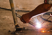 Pracownicy przemysłowi w zakładzie spawania z bliska
