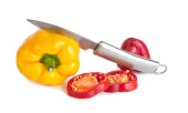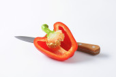 Zdjęcie "pół czerwonej papryki i nóż na białym tle nad białym" może być wykorzystywane do celów osobistych i komercyjnych zgodnie z warunkami zakupionej licencji Royalty-free. Obraz jest dostępny do pobrania w jakości wysokiej rozdzielczości do 5760x3840.