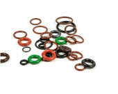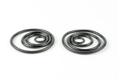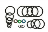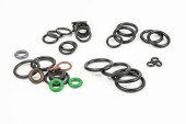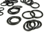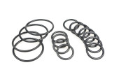 Oringi hydrauliczne i pneumatyczne w kolorze czarnym w różnych rozmiarach na białym tle. Różne uszczelnienia do kanalizacji. Pierścienie uszczelniające do połączeń hydraulicznych.