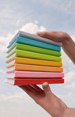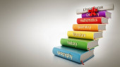Zdjęcie "Drabina i kupa kolorowych książek. 3D ilustracja." może być wykorzystywane do celów osobistych i komercyjnych zgodnie z warunkami zakupionej licencji Royalty-free. Obraz jest dostępny do pobrania w jakości wysokiej rozdzielczości do 5760x3840.