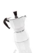 Metalowy gejzer dzbanek do kawy, izolowany na białym tle. Ekspres do kawy na białym. Wysokiej jakości zdjęcie