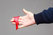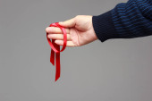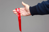 wstążka biurokracji, pętli taśmy wokół ludzkiego palca