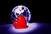 Cukierki Walentynki serca na mapie zielonej ziemi globalnego świata