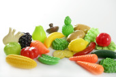 gra z tworzyw sztucznych, fałszywe różnorodne warzywa i owoce