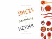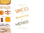 różne przyprawy i zioła na białym tle. widok z góry