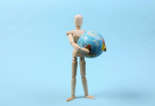 drewniany manekin mało gospodarstwa na mapie świata