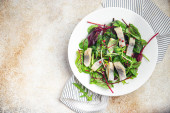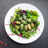 świeże sałatki oliwki zielone oliwki zdrowy posiłek jedzenie dieta przekąska na stole kopia przestrzeń żywności tło