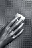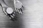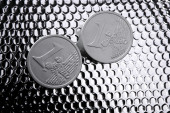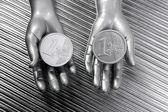 dwie srebrne monety euro w ręce futurystyczny robota