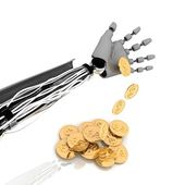 srebrne monety euro w ręce futurystyczny robota
