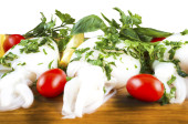 szaszłyki z mięsem z kurczaka, pomidorami i cebulą