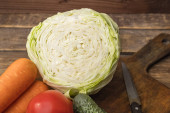 Zdjęcie "Surowy marchewka, cebula z skórka i biały kapusta z zielony liść na drewniany tablica. Zdrowa żywność wegetariańska. " może być wykorzystywane do celów osobistych i komercyjnych zgodnie z warunkami zakupionej licencji Royalty-free. Obraz jest dostępny do pobrania w jakości wysokiej rozdzielczości do 5760x3840.