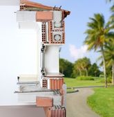 Elewacja ściany rzeczywistego przekroju cegły bloki