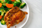 pesto smażony ryż z grillowanym kurczakiem na białym talerzu