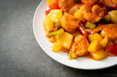 Mieszać smażony sos słodko-kwaśny z wieprzowiną i warzywami