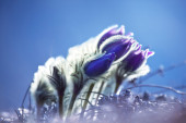kwiat róży na miękkich piór purpurowe tło
