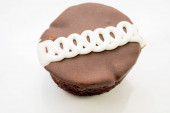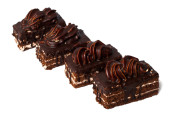 Opakowane czekoladowe ciasteczka matowe na białym tle