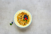 Zdjęcie "Zdrowa owsianka śniadaniowa ze słodkim tahini, pistacje, suszone morele, granat w misce. Ciepłe owies owsiany, wegańskie wegetariańskie odchudzanie diety śniadanie żywności" może być wykorzystywane do celów osobistych i komercyjnych zgodnie z warunkami zakupionej licencji Royalty-free. Obraz jest dostępny do pobrania w jakości wysokiej rozdzielczości do 5760x3840.