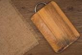 Drewniana deska do cięcia na czarnym drewnianym tle
