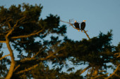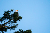 Zdjęcie "Widok z dołu łysego orła siedzącego na choince" może być wykorzystywane do celów osobistych i komercyjnych zgodnie z warunkami zakupionej licencji Royalty-free. Obraz jest dostępny do pobrania w jakości wysokiej rozdzielczości do 5760x3840.