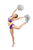 Cheerleaderka dziewczynę stwarzać stojące z pom-pom