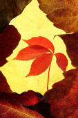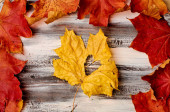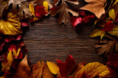 nadal z liści jesienią, ciemnego drewna tło, obraz upadku