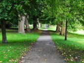 Bath, UK - 19 października 2014: Ludzie spacerują ścieżką w Victoria Park. Zabytkowe miasto w hrabstwie Somerset każdego roku odwiedza ponad 4 miliony turystów..