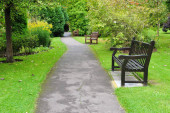 Zdjęcie "Bath, UK - 19 października 2014: Ludzie spacerują ścieżką w Victoria Park. Zabytkowe miasto w hrabstwie Somerset każdego roku odwiedza ponad 4 miliony turystów.." może być wykorzystywane do celów osobistych i komercyjnych zgodnie z warunkami zakupionej licencji Royalty-free. Obraz jest dostępny do pobrania w jakości wysokiej rozdzielczości do 5760x3840.