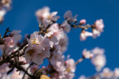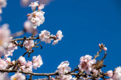 piękne kwitnące drzewo owocowe z białymi kwiatami w słoneczny wiosenny dzień