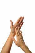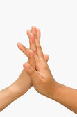 matka i syn, córka rękę razem