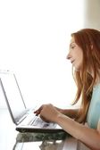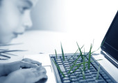 ekologia koncepcja rąk kobiety, wpisując klawiatury