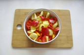 Połóż kawałki okoni na ziemniakach. Przykryć wieczkiem i gotować przez 15 protokół.
