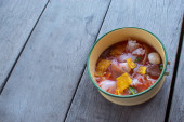 Zdjęcie "Połóż kawałki okoni na ziemniakach. Przykryć wieczkiem i gotować przez 15 protokół." może być wykorzystywane do celów osobistych i komercyjnych zgodnie z warunkami zakupionej licencji Royalty-free. Obraz jest dostępny do pobrania w jakości wysokiej rozdzielczości do 5760x3840.