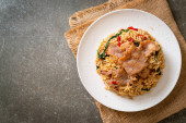 Nasi goreng - smażony ryż z wieprzowiną w stylu indonezyjskim - azjatycki styl żywności