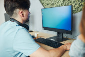 Zdjęcie "Nastolatka grająca w gry wideo w domu. Gracz trzyma gamepady siedzące przed ekranem. Streamer gra online w ciemnym pokoju oświetlone przez neony. Konkurencja i zabawa" może być wykorzystywane do celów osobistych i komercyjnych zgodnie z warunkami zakupionej licencji Royalty-free. Obraz jest dostępny do pobrania w jakości wysokiej rozdzielczości do 5760x3840.