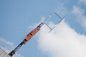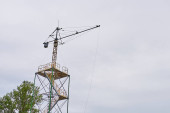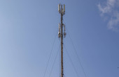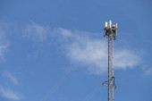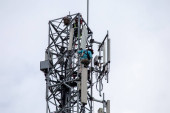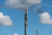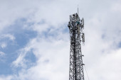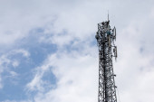 antena 5g nadajnik sieci komórkowej został wciągnięty na szczyt słupa telefonu komórkowego. modernizacja z 4g do 5g prac inżynierskich wysokiego ryzyka w Tajlandii