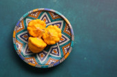 Zdjęcie "Patty Pan squash na dekoracyjnej płycie ceramicznej. Choroba z warzywami. Piękna żółta patty pan zgniecenia zamknąć zdjęcie. Teksturowane tło z przestrzenią do kopiowania. " może być wykorzystywane do celów osobistych i komercyjnych zgodnie z warunkami zakupionej licencji Royalty-free. Obraz jest dostępny do pobrania w jakości wysokiej rozdzielczości do 5760x3840.
