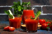 kieliszek koktajlu alkoholowego Krwawa Mary na ciemnym tle, poziomy