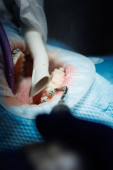 Zdjęcie "Dentysta traktuje zęby pacjenta sprzętem stomatologicznym i trzyma instrumenty stomatologiczne w pobliżu zębów. Zbliżenie. Dentysta." może być wykorzystywane do celów osobistych i komercyjnych zgodnie z warunkami zakupionej licencji Royalty-free. Obraz jest dostępny do pobrania w jakości wysokiej rozdzielczości do 5760x3840.