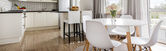 Zdjęcie "stół jadalny z białym talerzem w nowoczesnym domu. bawełniane gałęzie są w wazonie. Przytulne kuchni.Piękne ustawienie stołu z kwiatów narcyz" może być wykorzystywane do celów osobistych i komercyjnych zgodnie z warunkami zakupionej licencji Royalty-free. Obraz jest dostępny do pobrania w jakości wysokiej rozdzielczości do 5760x3840.
