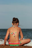 Letni wypoczynek, słodka dziewczyna odpoczywająca na plaży w pobliżu wody Morza Czarnego, Wschodni Krym