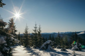 Zdjęcie "Zimowy las sosnowy. Słoneczna przyroda śnieg krajobraz." może być wykorzystywane do celów osobistych i komercyjnych zgodnie z warunkami zakupionej licencji Royalty-free. Obraz jest dostępny do pobrania w jakości wysokiej rozdzielczości do 5760x3840.