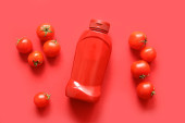 Zdjęcie "Widok z góry strzał tropikalny zimny napój mieszany butelka soku z plasterkami surowca dojrzałe świeże owoce jabłko cytryna pomarańczowa i marakuja owoce umieszczone ozdobione wielu owoców" może być wykorzystywane do celów osobistych i komercyjnych zgodnie z warunkami zakupionej licencji Royalty-free. Obraz jest dostępny do pobrania w jakości wysokiej rozdzielczości do 5760x3840.